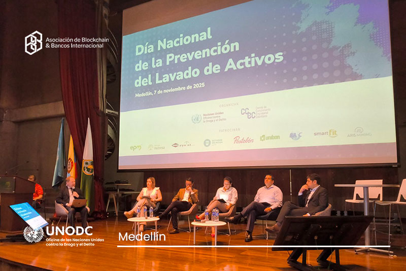 La Asociación Internacional de Blockchain y Bancos (ABBI) participó activamente en la conmemoración del Día Nacional de Prevención al Lavado de Activos, organizada por la Oficina de las Naciones Unidas contra la Droga y el Delito (UNODC) en las ciudades de Bogotá y Medellín. Las jornadas reunieron a autoridades, reguladores, oficiales de cumplimiento y actores del sector privado para fortalecer la prevención y la detección de riesgos asociados al uso de criptoactivos.